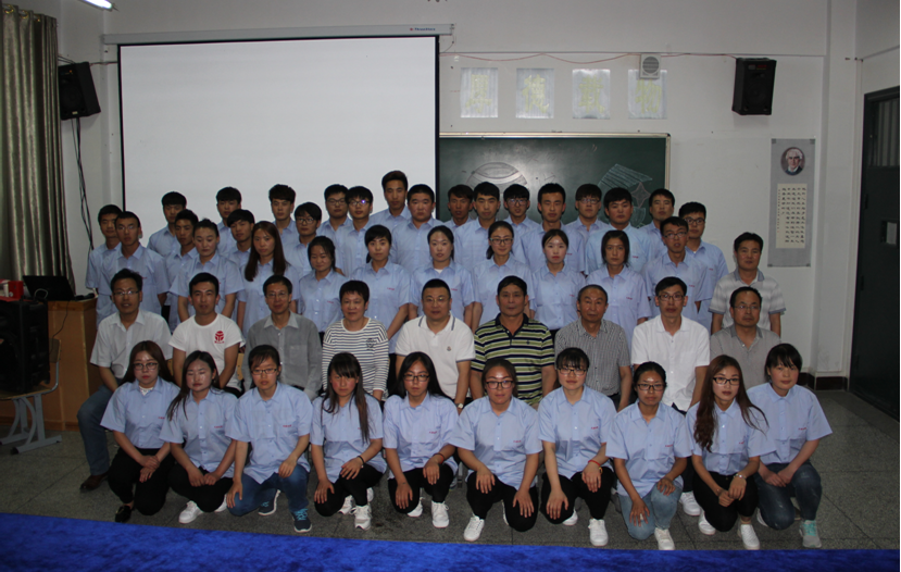 机械工程系副主任张毅教授讲话。宣布“天球班”正式成立,感谢温州天球电器有限公司为我院深化校企合作注入了强劲动力,真诚希望“天球班”在我院培养高素质、技能型、创新型人才过程中发挥更大的示范和推动作用,诚挚希望温州天球电器有限公司领导一如既往地对我院人才培养培训工作给予大力支持。张毅向全体学生介绍温州天球电器有限公司优秀毕业生事迹,学哥学姐在温州天球实习以后是如何在企业留下来并进一步发展,希望同学们以他们为榜样,向他们学习。